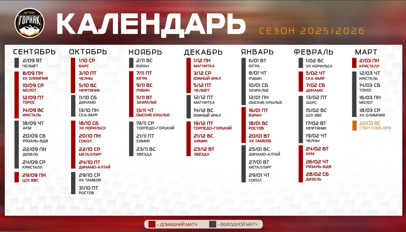 Календарь матчей «Горняка-УГМК» в сезоне 2025/26