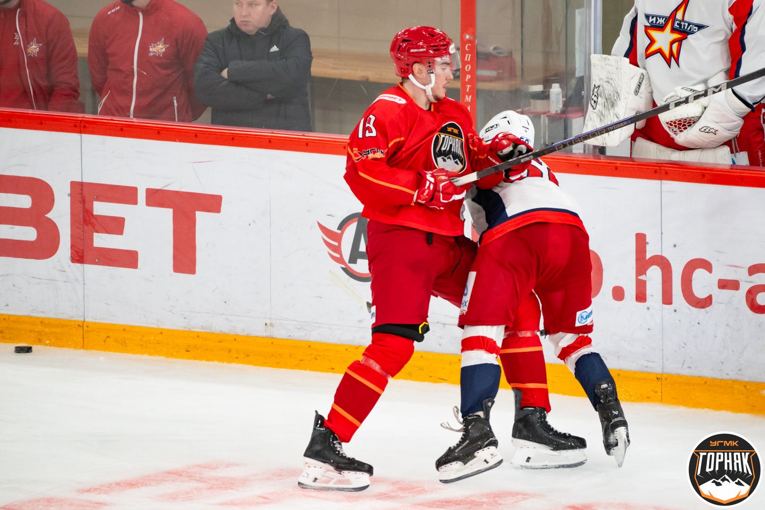 В начале первого периода верхнепышминцы реализовали большинство и открыли счёт. Точным броском за спину вратарю «Ижстали» отметился Василий Филяев, а в ассистентах у нашего нападающего значились Юрий Журавлёв и Владислав Демидович. На 14-й минуте матча Никита Миллер удвоил преимущество «Горняка-УГМК» вторым голом в ворота соперника.