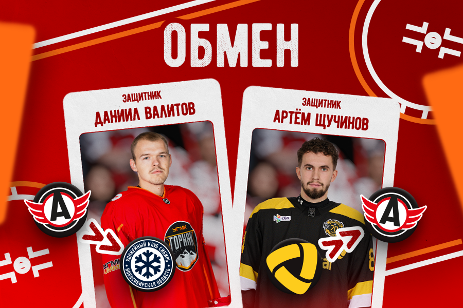 «Автомобилист», «Северсталь» и «Сибирь» произвели трёхсторонний обмен. В результате этого обмена из «Северстали» в наш клуб переходит 20-летний защитник Артём Щучинов, а покидает систему ХК «Автомобилист» 25-летний игрок обороны Даниил Валитов, ставший хоккеистом «Сибири».